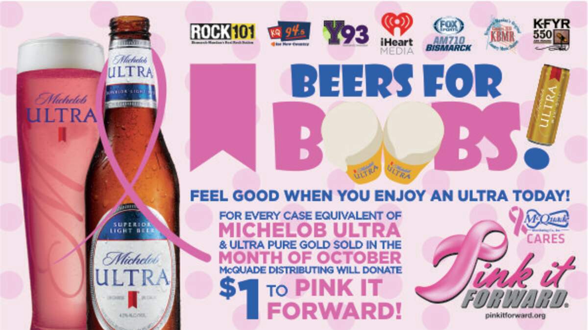ICYMI: During the month of October, McQuade Distributing-Bismarck will donate $1 for every case equivalency sold of Michelob Ultra and Ultra Pure Gold to Pink It Forward.